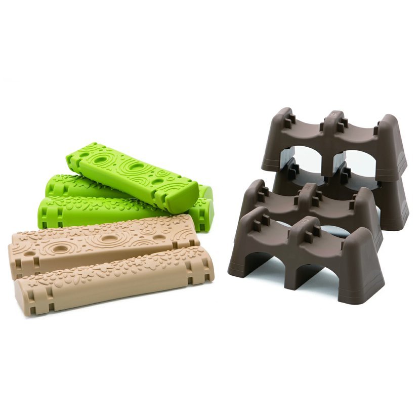 Obsah: 4 x základna, 6 x kmen stromu (3 x zelený, 3 x světle hnědý)