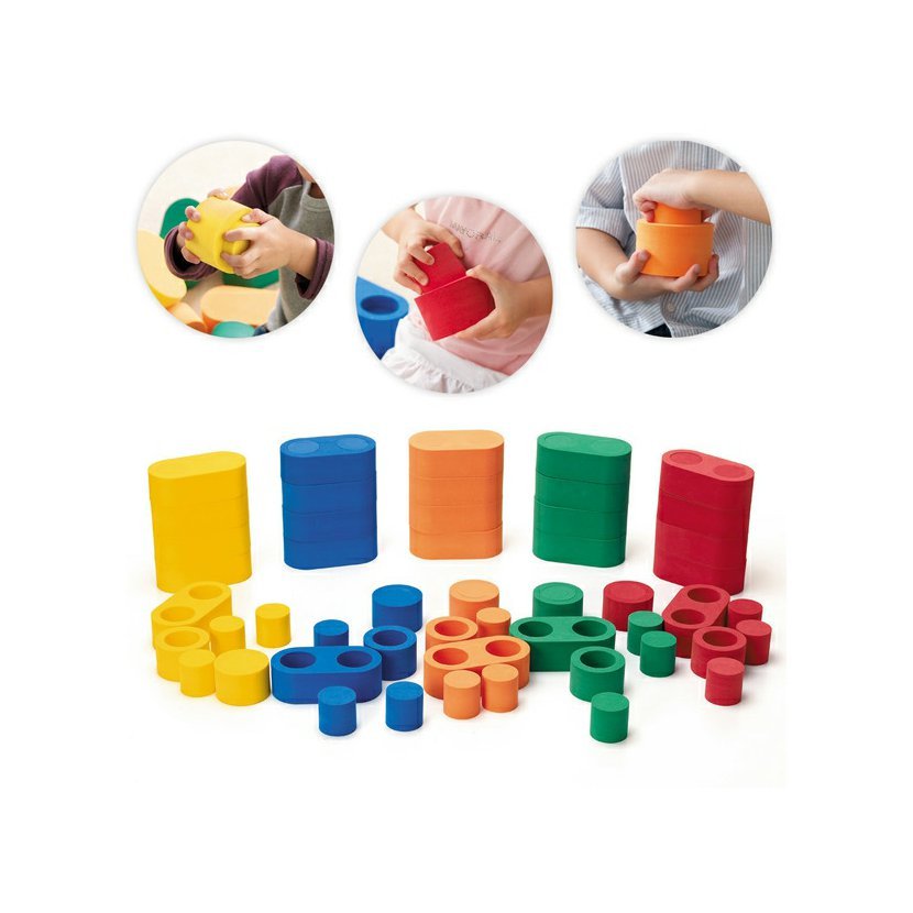 Při spojování a rozpojování jednotlivých dílů je využíván otáčivý pohyb v zápěstí. Otáčení válců ze závitu zvyšuje u dětí sílu úchopu.