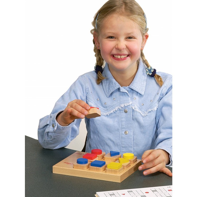obsah: celkem 16 kostek (5 x 5 x 5 cm), 6 vzorových karet, výchovně vzdělávací cíl: rozvoj představivosti a kreativity, věk: 3+, Umožňuje vytvořit geometrické, 2-D umělecké výtvory a 3-D objekty.