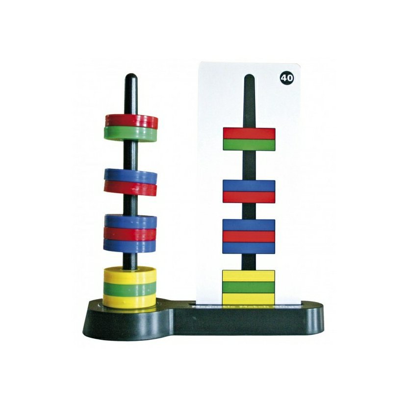 obsah: 1 x stojan (rozměr 15 x 6 x 16 cm), 10 x magnetický kroužek (průměr 3,5 cm) , 40 x karta s předlohou