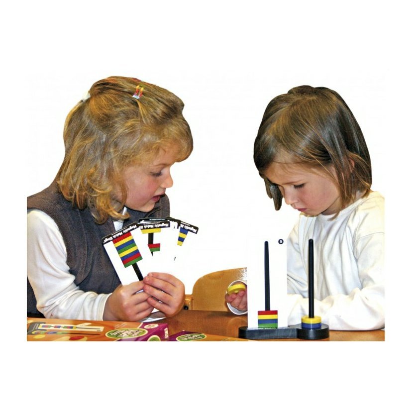 Děti mohou při navlékání magnetů na stojan využít vzorových karet nebo stavět podle vlastní fantazie.