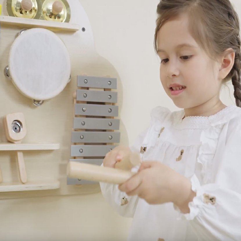 Tato hudební sada je nejen skvělou vzdělávací pomůckou, ale také stylovou dekorací, která vnese do každé místnosti hravost a harmonii. Děti si užijí spoustu zábavy a nenásilnou formou se naučí pojmenovat a správně používat jednotlivé hudební nástroje a zároveň poznají nové zvuky a rytmy.
