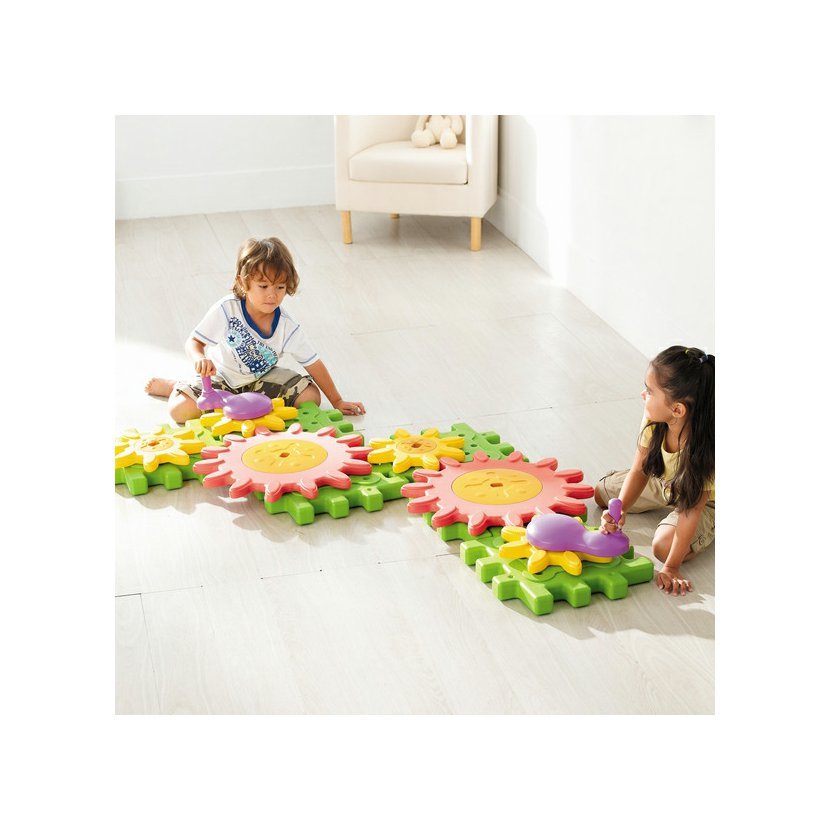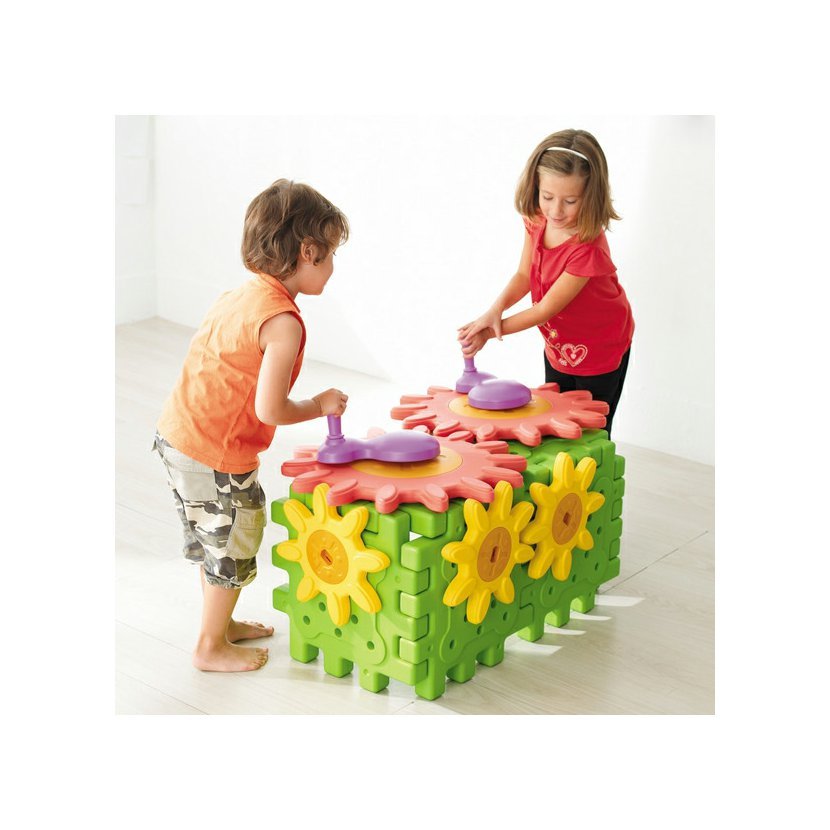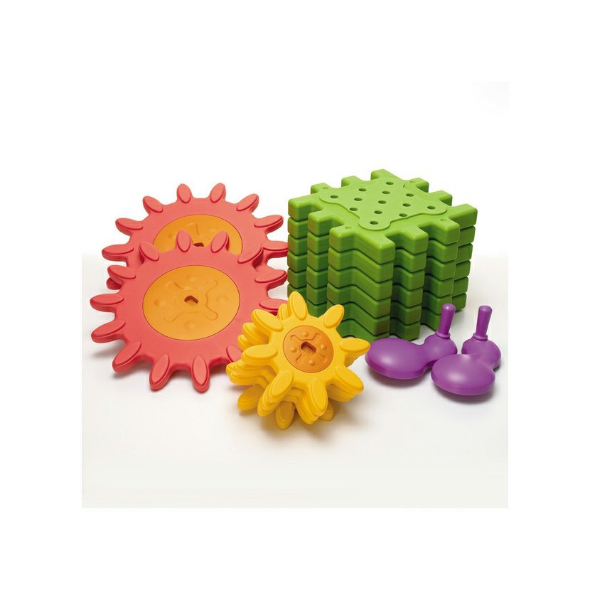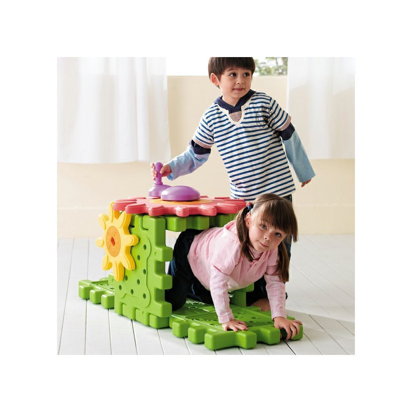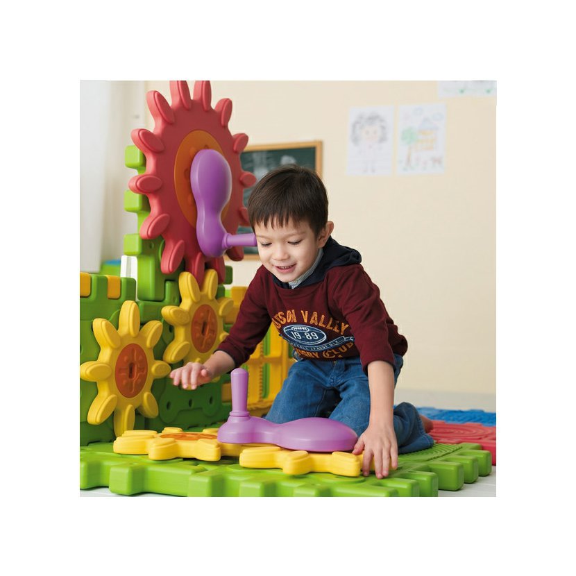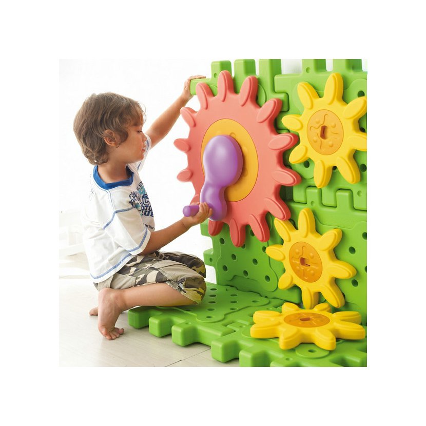 obsah: celkem 14 kusů, 6 x panel (40 x 40 x 5cm), 2 x velké ozubené kolečko (průměr 52 cm), 4 x malé ozubené kolečko (průměr 30 cm), 2 x otočná páka (27 x 15 cm),