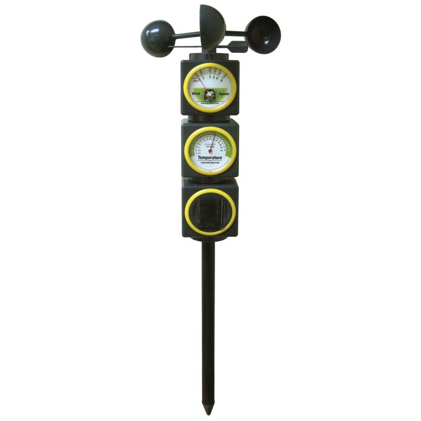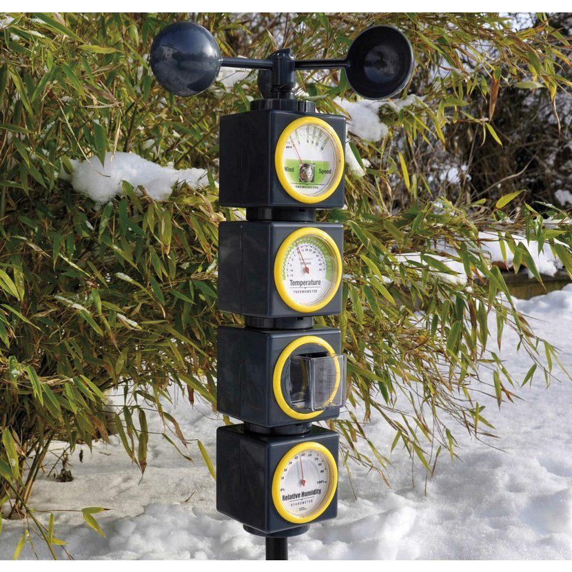 obsah: teploměr, měřič rychlosti a směru větru, nádobka na měření množství dešťových srážek