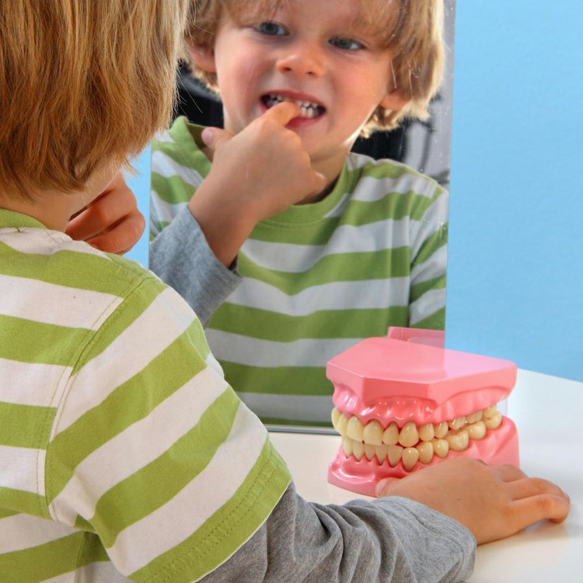 Správné žvýkání je součástí zdravé výživy. Jak ale žvýkání funguje? V tomto modelu mohou děti sledovat, jak zuby fungují, a internalizovat, jak důležité jsou zdravé zuby. Model zubů ukazuje optimální spojení zubů. Jednotlivé zuby modelu jsou všechny koordinované. Model je mimochodem velmi vhodný i pro nácvik technik čištění zubů.