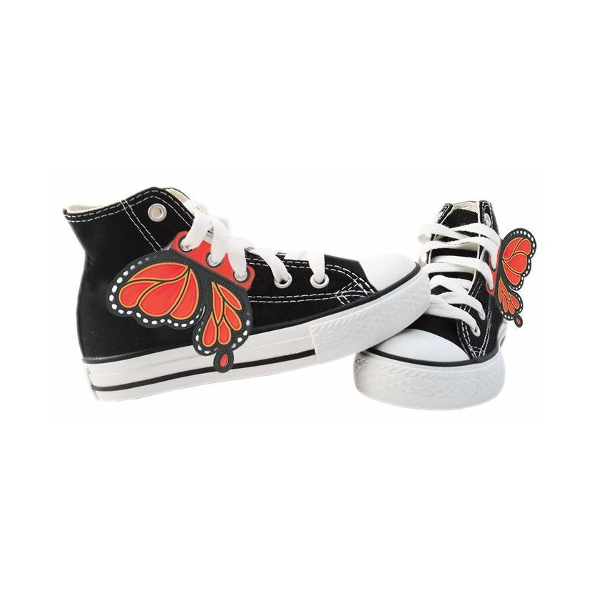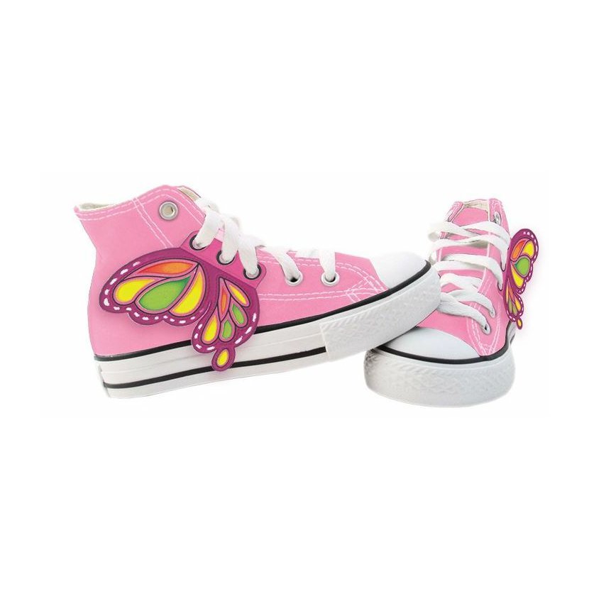 Buďte originální s motýlími křídly na svých šněrovacích botách. Křídla se jednoduše navléknou na tkaničky vnější strany obou bot. Pestré barvy a nevšední vzhled je zárukou toho, že si tě každý všimne.