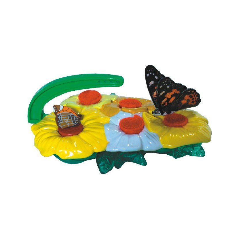 Když vypustíte motýly do přírody z vaší motýlí zahrádky, tak to ještě nemusí být naposledy co jste je viděli. Motýli mají tendenci vracet se na místo svého vylíhnutí a pomocí tohoto originálního motýlího krmítka je tedy můžete sledovat i po vypuštění. Krmítko má originální květinový design a důmyslný systém jak přilákat a nakrmit motýly. Každá květina má uvnitř květu vyjímatelnou houbičku, kterou můžete napustit nektarem. Motýl může snadno "sosat" a tak se bude vracet. Stačí už jen zavěsit na okno nebo na zahrádku, pravidelně doplňovat nektar a sledovat.