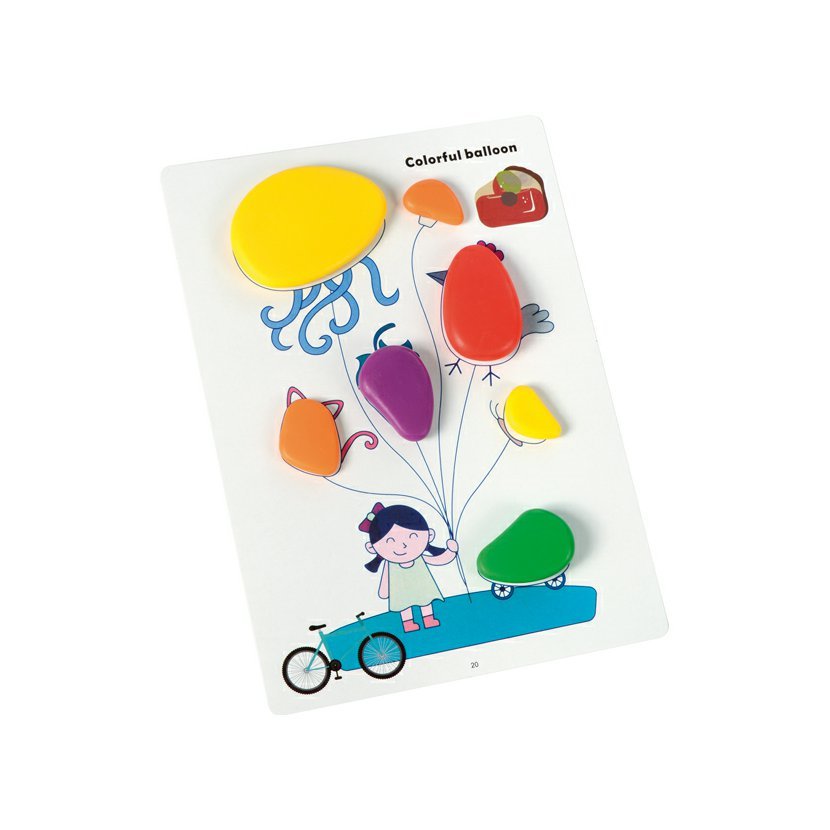 Pro nejmenší začíná dobrodružství tříděním a pojmenováváním barev. Jakmile se rozkoukají, mohou pokládat oblázky na šablony, skládat je na sebe, či dokonce tvořit vlastní obrázky. Velké šablony motivů jsou základem této kreativní hry, kde děti hledají správnou velikost a otáčejí oblázky tak, aby perfektně zapadly.