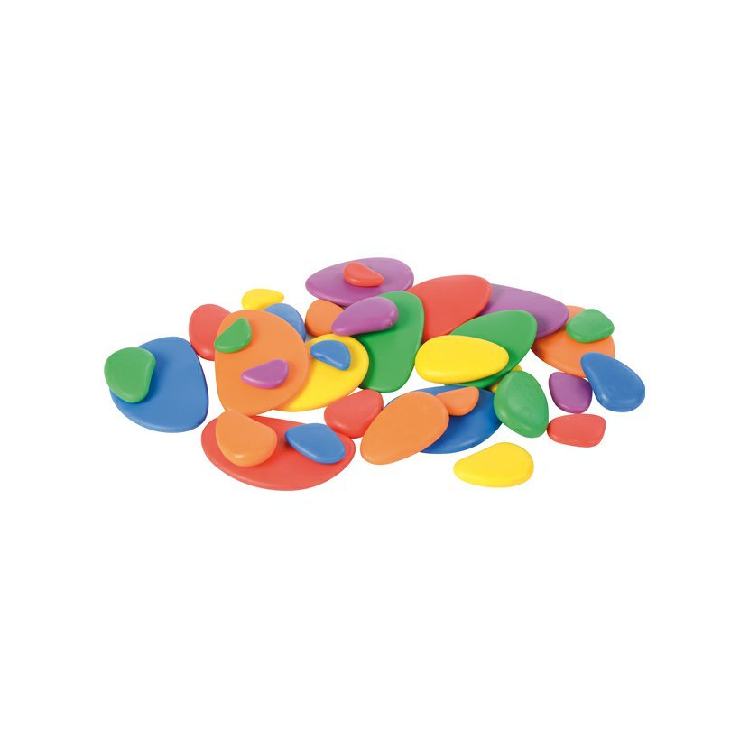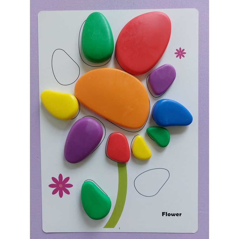 S těmito rozkošnými šablonami a barevnými oblázky se děti budou učit, třídit a tvořit s radostí. Počítání a třídění barev jsou jen začátek této výukové hry. Duhové oblázky nabízejí neuvěřitelně vysokou hrací hodnotu pro děti různého věku, a to díky svému příjemnému povrchu a veselým barvám. Hra podporuje jemnou motoriku, představivost, soustředění a pozorovací schopnosti.