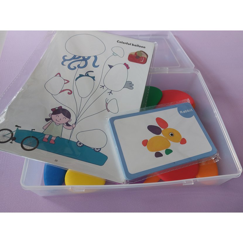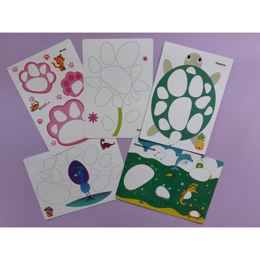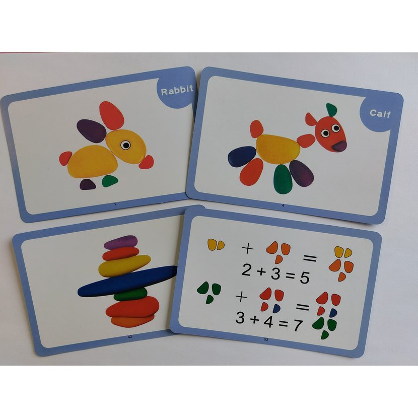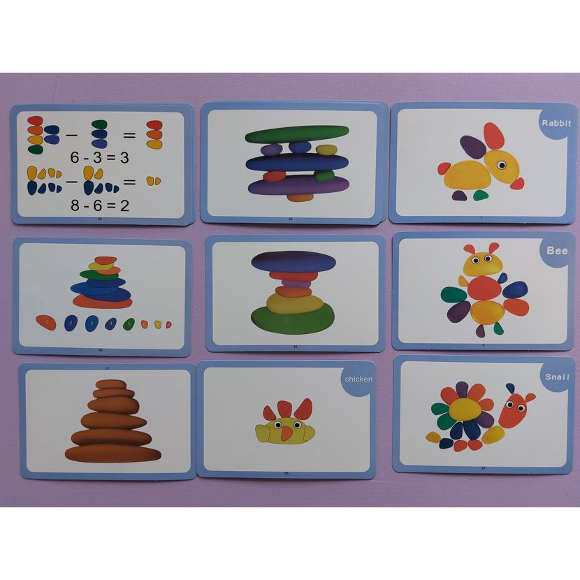 Malé šablonové karty poslouží jako perfektní předloha ke hrám s oblázky na stole. Při skládání oblázků na sebe je vyžadována soustředěnost a jemná motorika, zatímco aritmetické hry a počítání rozvíjí matematické dovednosti.