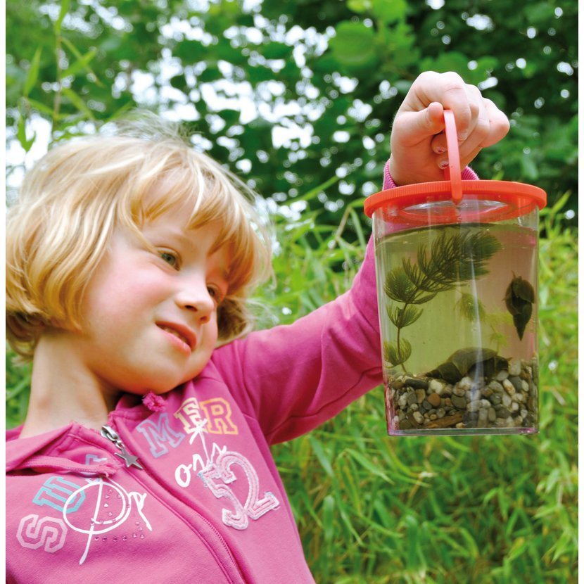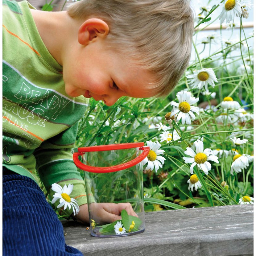 Opravdu veliká nádoba s rukojetí a víkem se zvětšovacím sklem. Skvělé pro pozorování rostlin a živočichů. Vzorek s 5 mm mřížkou na dně nádoby umožňuje velikost živočichů také měřit.
