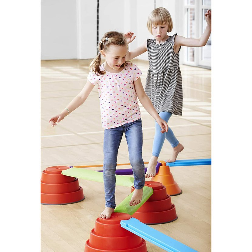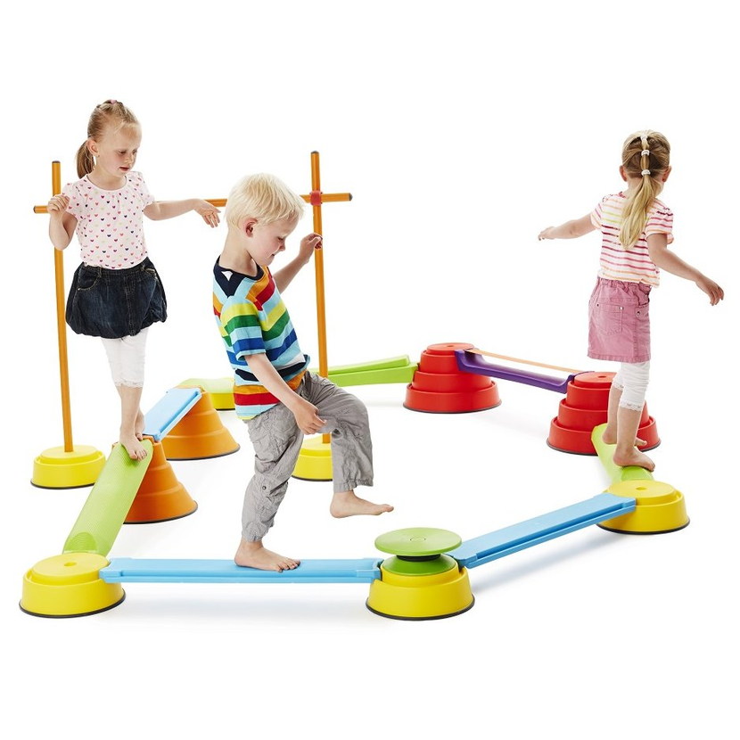 Variabilní balanční sada přináší hravý způsob rozvoje motoriky, rovnováhy a koordinace. Může být také součástí terapie dětí, jejichž motorický vývoj je opožděn nebo dětí i dospělých s omezením pohybu.