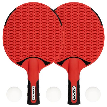 Pingpongový set Avento Outdoor 46TZ je speciálně navržený pro venkovní hru. Sada obsahuje dvě pálky, které jsou vyrobené z odolného PP materiálu, díky kterému jsou voděodolné a vy tak můžete hrát i za horšího počasí. Anatomické rukojeti poskytují lepší grip a kontrolu během hry. Součástí balení jsou také tři ABS míčky s klasickým průměrem 40 mm. To vše je dodávané v praktickém obalu, díky kterému celou sadu lehce přenesete a uskladníte. - pingpongová sada pro venkovní použití - 2 PP pálky s anatomickými rukojeťmi - 2 mm gumová horní a spodní vrstva pro extra kontrolu - 3 míčky ABS, průměr 40 mm - rozměry balení: 26 x 16 x 5 cm - hmotnost balení: cca 0,45 kg
