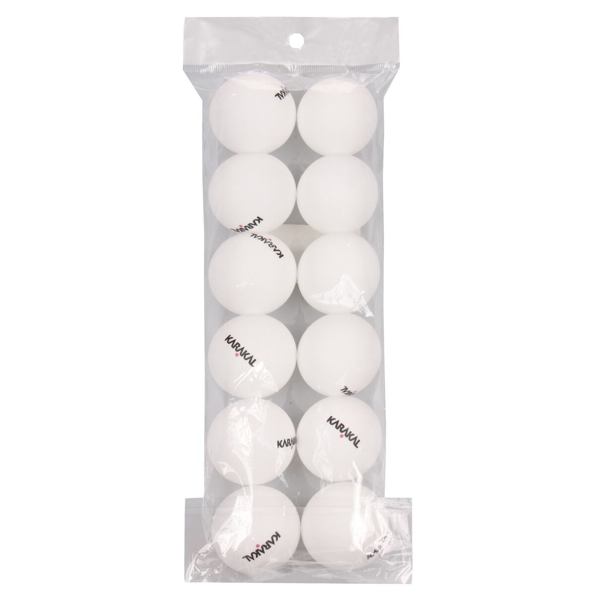 Tréninkové míčky na ping pong Karakal Pack 12* jsou ideální volbou pro začínající a rekreační hráče, pro školy a sportovní kluby. Bezešvé míčky z PE materiálu s klasickým průměrem 40 mm jsou v bílé barvě s logem. Míčky jsou dodávané v balení 12 ks. Parametry: - materiál: PE - kvalita: trénink, 1* - průměr: 40 mm - barva: bílá, s logem - balení 12 ks