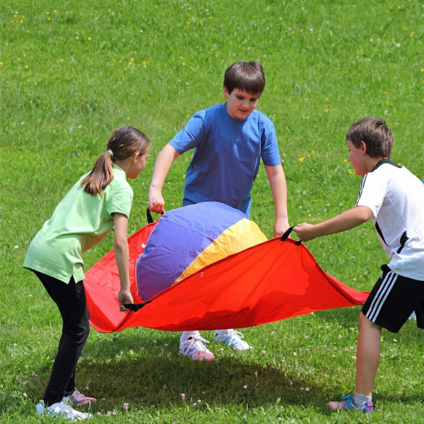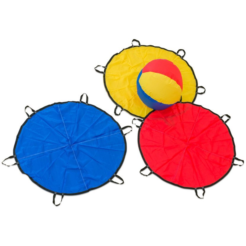 S třemi odolnými padáčky a velkým nafukovacím míčem můžete zažít vzrušující hru! Vaším úkolem je spolupracovat se svým týmem a rozhodnout se o směru hry. Každý padáček disponuje nejen pevným střihem a kvalitním materiálem, ale také 6 poutky pro pevný úchop. Do hry se tedy může zapojit až 9 hráčů současně.