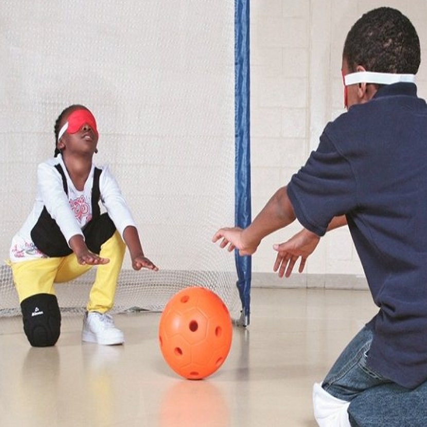 Pomůcka k zakrytí očí při různých psychomotorických hrách, např. hra s míčem Goalball, který má uvnitř rolničku.