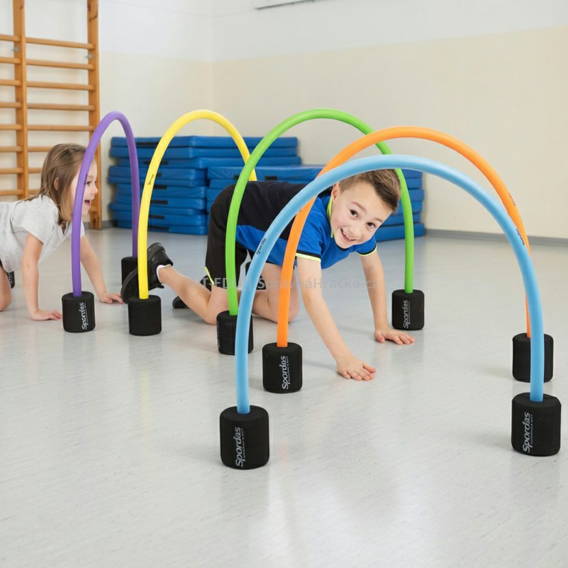 Podpořte pohybový rozvoj dětí hravou a bezpečnou formou. Pěnové prolézací branky od značky Spordas jsou ideální pomůckou pro školky, školy, sportovní kluby i domácí využití. Díky lehkému a odolnému materiálu Ultrafoam jsou branky příjemné na dotek, snadno manipulovatelné a přitom dostatečně stabilní pro každodenní použití. Tato sada šesti barevných prolézaček je navržena tak, aby podporovala motoriku, koordinaci a prostorové vnímání dětí.