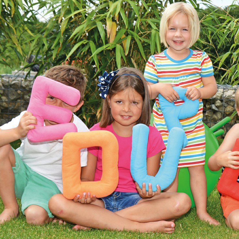 Existuje velké množství nápadů pro hravé učení např. Vymyslet zvíře s počátečním písmenem M, opsat čísla na papír, tvořit slova tím, že každé dítě si drží jedno písmeno před sebou a podle něj vymýšlí nebo každé z 10 dětí dostane jedno číslo a postupně počítají společně od 0-9, atd. Na závěr si mohou děti s těmito měkkými látkovým čísly a písmeny pohrát.