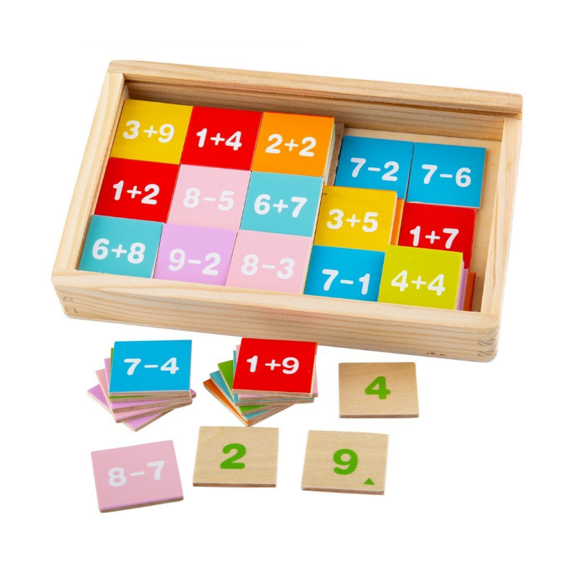 Dřevěné sčítání a odčítání v krabičce obsahuje pestrobarevné dřevěné dílky s kombinací sčítání a odčítání čísel 1-9. Představte dětem v předškolním i raném školním věku počty zábavnou formou. Díky praktické krabičce je tato hračka skvělým společníkem na cesty.