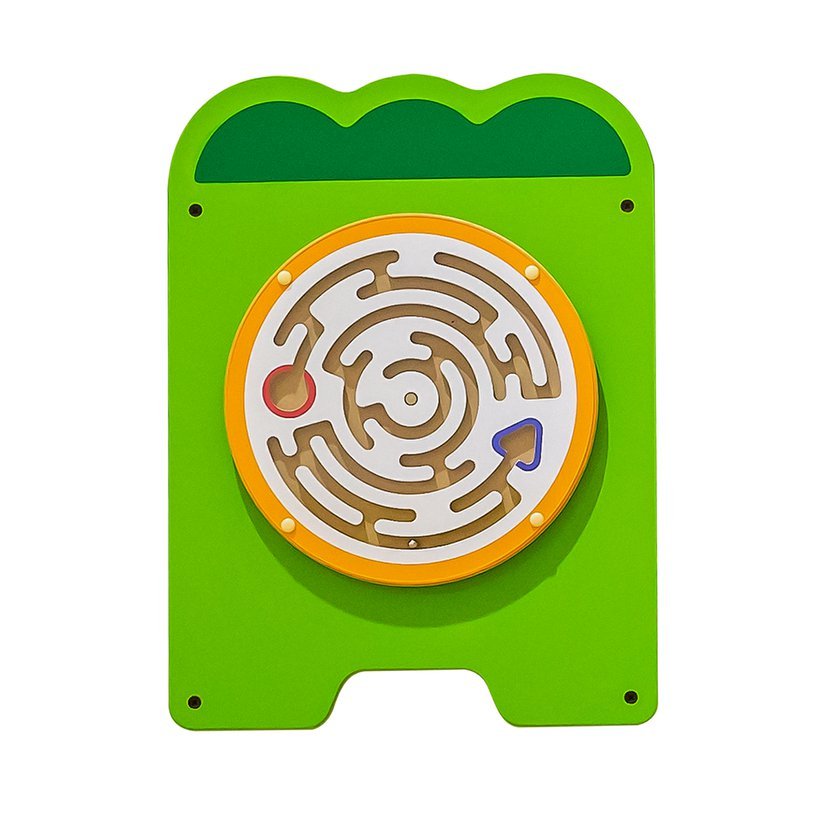 Kruhové bludiště s kovovou kuličkou: Druhý herní prvek obsahuje kruhové bludiště s kovovou kuličkou. Dítě může otáčet kolečkem, aby kuličku dostalo do správného bodu, což zároveň rozvíjí koncentraci, pozornost a logické myšlení. Vše je zakryto plexisklem, nehrozí tedy, že by se kulička mohla ztratit.