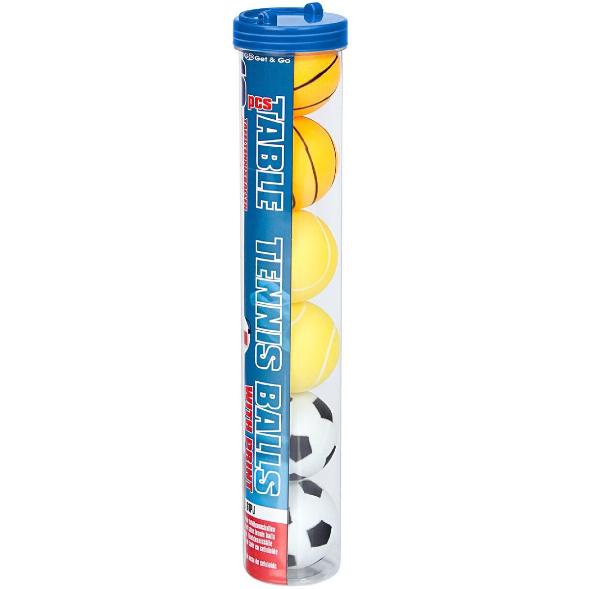 Oživte svou hru ve stolním tenisu s míčky na ping pong Get&Go Print, které jsou vyrobené v zajímavějším designu než klasické bílé míčky. Tyto celuloidové míčky s tradičním průměrem 40 mm jsou určené pro rekreační hráče. Sada obsahuje celkem 6 míčků s potiskem fotbalových míčů, basketbalových míčů a tenisových míčů.