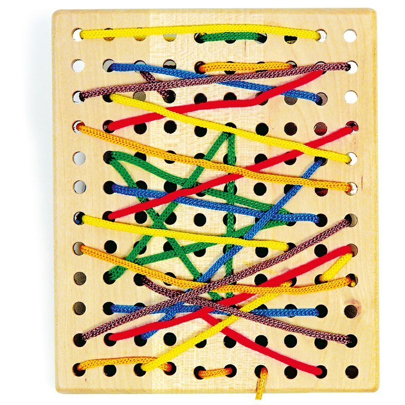 obsah: 1 x provlékací deska (17 x 13 x 1,5 cm), provlékací šňůrky,