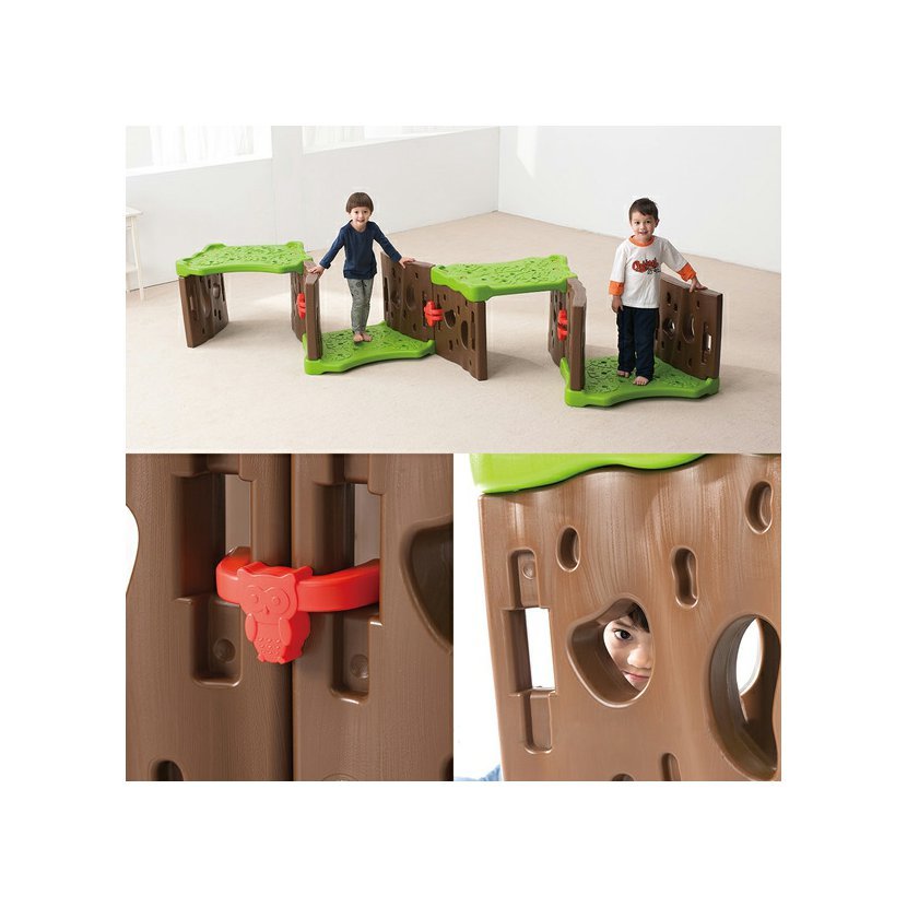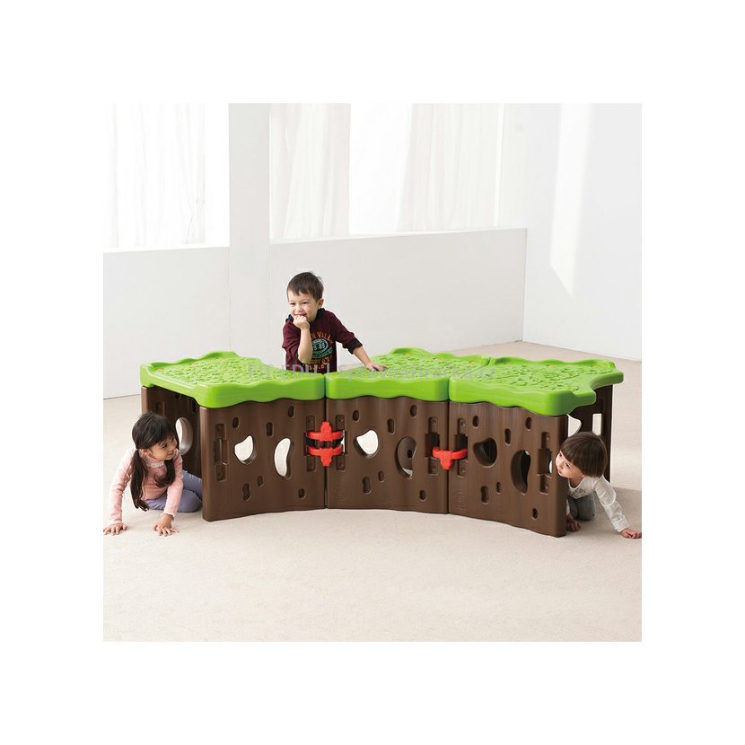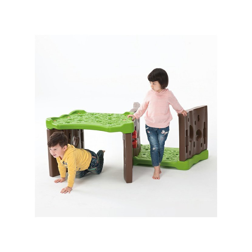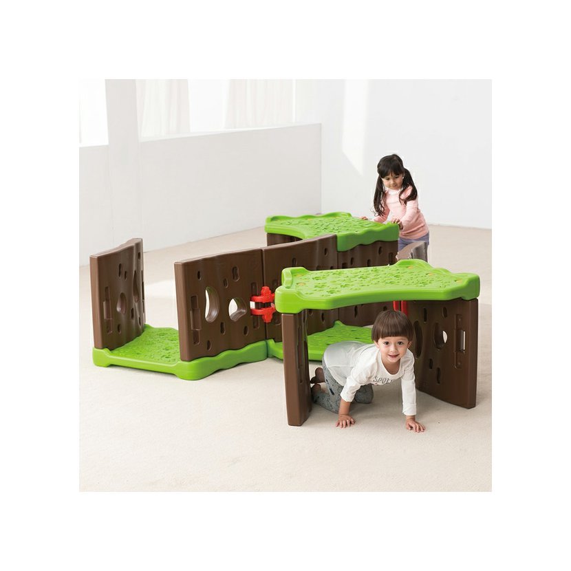 Konstrukce s otevřenými otvory umožňuje procházet světlu lesním tunelem, a tak poskytuje dostatečnou viditelnost pro prolézání batolat.