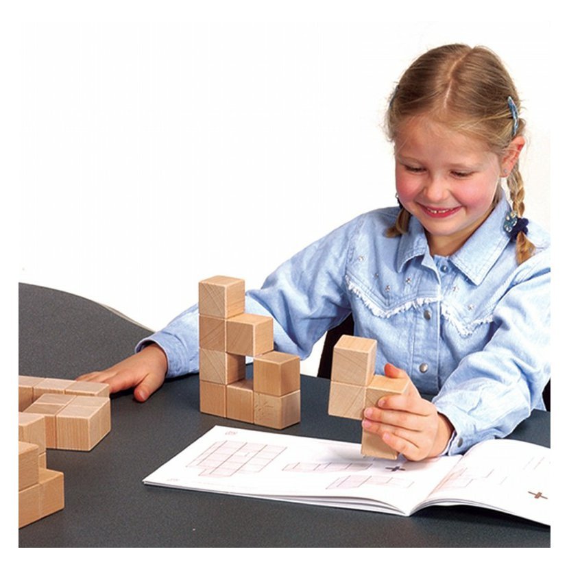 Obsah: 8 velkých stavebních elementů z masivního bukového dřeva v různé formě a kompozici. Rozměr základního stavebního elementu-kostka je 4x4x4xcm. Baleno do kartonového úložného boxu 31 x 22 x 9 cm, obsahuje brožuru s obrazci. Vhodné pro 1-2 hráče