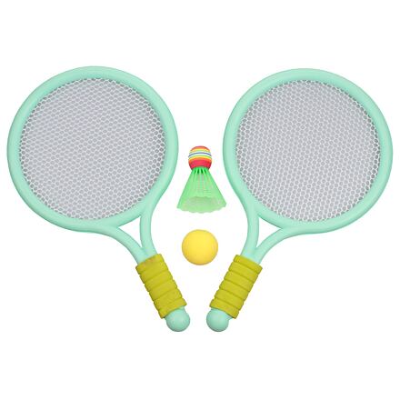 Se sadou raket Merco Racket Ball Game si děti u vody, na zahradě, nebo na dětském hřišti užijí spoustu zábavy. Podle chuti a nálady můžou střídat hru s lehkým kulatým míčkem nebo s badmintonovým košíčkem s pěnovou hlavou. Plastové rakety s měkkým výpletem ze síťoviny a s příjemnou pěnovou rukojetí jsou velmi lehké a pinkání s nimi snadno zvládnou i ti nejmenší sportovci. Sada je uložená v praktické plastové síťce. Parametry: - vnější průměr hlavy rakety: 23 cm - celková délka rakety: 39 cm - hmotnost jedné rakety: 78 g - průměr pěnového míčku: 4,5 cm, váha: 6 g - výška badmintonového košíčku: 8 cm, váha: 6 g - celková hmotnost sady: 170 g - materiál: PVC (rakety a košíček), EVA pěna (rukojeť rakety, kulatý míček) Obsah balení: - 2 x raketa - 1 x kulatý míček - 1 x badmintonový míček - 1 x síťovaný sáček