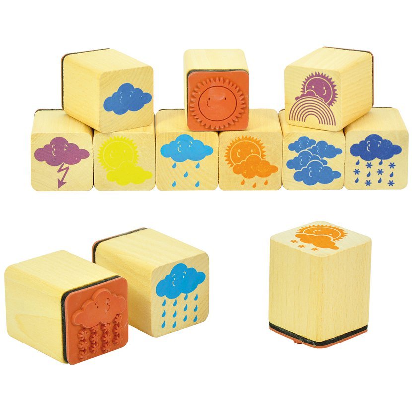 Razítka seznamují děti s jednotlivými druhy a proměnlivostí počasí. Vytvořte si vlastní aktuální zprávy o počasí.