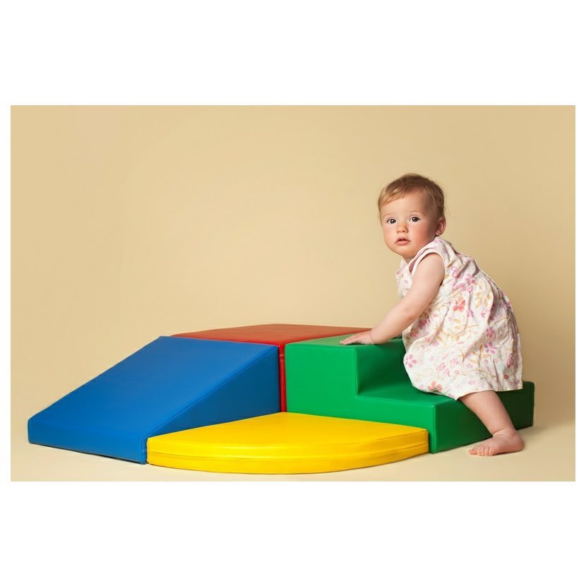 Obsahuje 1 x schody (20 x 40 x 40 cm),1 x kvádr (20 x 40 x 40 cm), 2 x klín (20 x 40 x 40 cm), 2 x čtvrtkruh (5 x 40 x 40 cm),