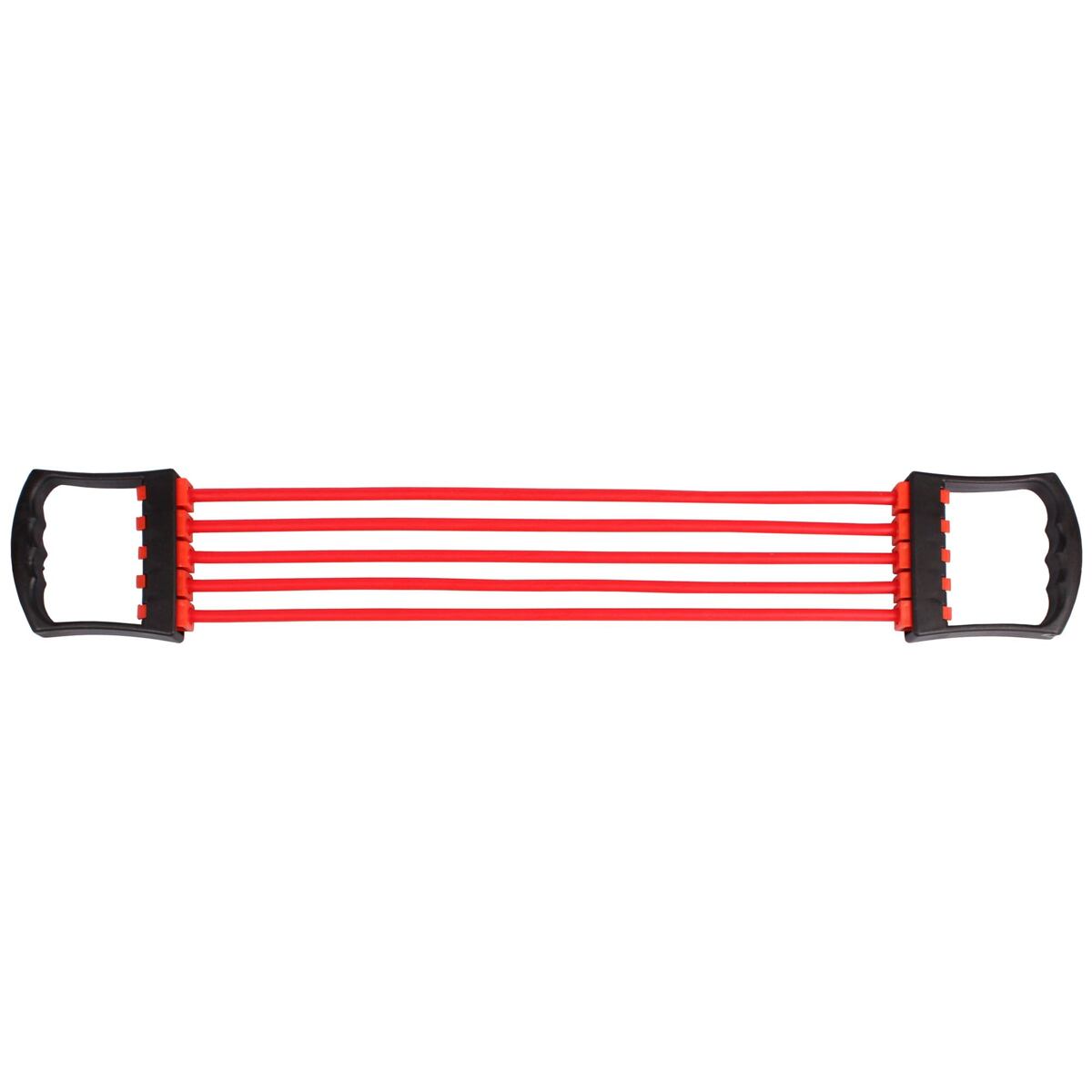 Rubber Expander je univerzální posilovač určený pro posilování svalů horní poloviny těla - hrudníku ,ramen, paží a zad. Využijete jej také při rehabilitačním cvičení. Tento posilovač se skládá z pěti odnímatelných gumových lan z TPE materiálu a ergonomických plastových držadel. Počtem lan regulujete náročnost cvičení. Cvičte v pohodlí domova s posilovačem Rubber Expander. - délka gum: 45 cm - rozměr madla: 9 x 10 x 2 cm