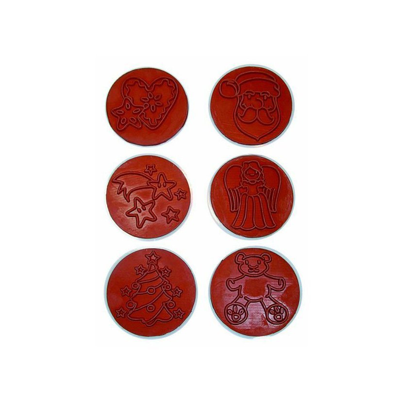 obsah: 6 razítek s motivy (Ježíšek, vánoční stromek, perníček, kometa, anděl, medvídek) průměr 7,5 cm, materiál: plast, guma