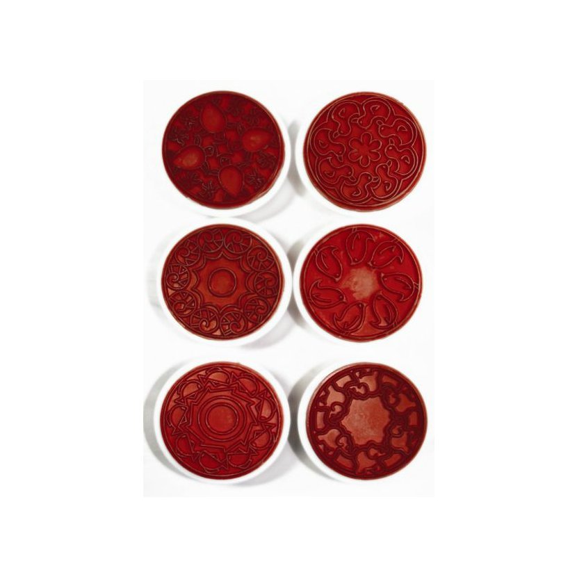 • obsah: 6 razítek ø 7,5 cm s úchopy o velikosti 4 cm (různé motivy)