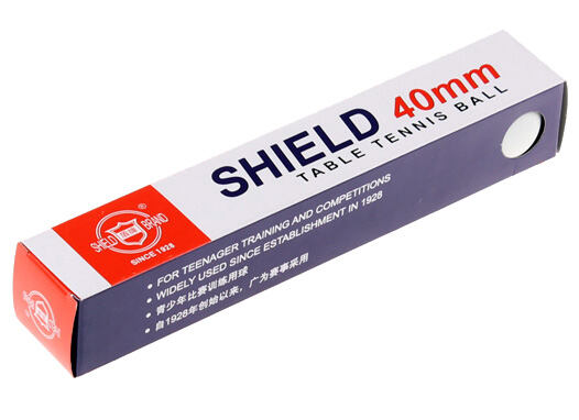 Míčky na stolní tenis Shield jsou vyrobeny v Číně a prodáváme je v balení po šesti kusech.