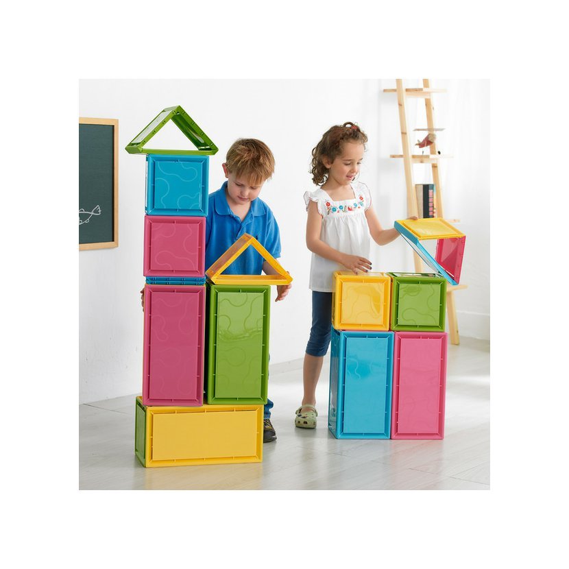 obsah: celkem 68 stavebních dílů (44 x čtverec 20 x 20 cm, 20 x obdélník velký 40 x 20 cm, 4 x obdélník malý), 4 x nástroj k demontáži,
