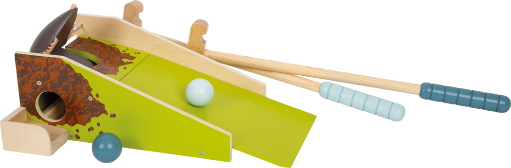 Zahrajte si minigolf pod bedlivým dohledem krtka. Minigolf je vyroben z kvalitního dřeva, což zajišťuje bezpečnost a odolnost. Představuje skvělý způsob, jak dětem přiblížit svět golfu a zároveň je bavit a rozvíjet jejich dovednosti. Sada obsahuje golfovou dráhu s krtečkem, což dělá hru pro malé hráče atraktivnější. Když míček spadne do doupěte, krtek vystrčí hlavu z díry a zamává na úspěšného hráče tlapkami. Míč propadne výstupním otvorem na boku, takže zábava může začít znovu. Dodává se s golfovými holemi ve velikosti vhodné pro děti. Hra je vhodná pro dva hráče díky dvěma dřevěným holím a dvěma míčkům. Speciální "chňapací" mechanismus přidává extra dávku zábavy při hraní minigolfu a povzbuzuje mladší děti, aby hrály zas a znova. Hra je zábavná pro všechny věkové kategorie a podporuje rozvoj koncentrace a motorických dovedností. Vhodná pro hraní doma i venku, což umožňuje dětem hrát nezávisle na počasí. Hra obsahuje: 2 ks golfových holí , 2 barevné kuličky a jednu golfovou dráhu. Hlavní vlastnosti: hra vhodná pro hraní doma i venkurozvíjí jemnou motoriku, koordinaci a rozvoj dovedností