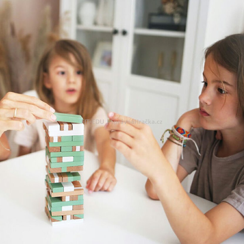 Klasická hra v moderním a elegantním vzhledu s krásnými zlatými detaily, trendy pastelovými barvami v kombinaci s bílou barvou a jasně viditelným dřevem. Hra se skládá z 54 vysoce kvalitních a pevných dřevěných dílků s různými designy. Různé úrovně obtížnosti a konstrukce věže, můžete hrát s kostkou i bez ní. Vysoce kvalitní hračka, která je pěkná na pohled. Balení 2v1, krabice neslouží jen jako úložiště, pomůže vám také se stavbou věže. Pomáhá s rozvojem jemné motoriky a soustředěnosti dětí. Skvěle se hodí k ostatním klasickým hrám z kolekce Gold Edition. Hře lze jednoduše porozumět, je zábavná a nadchne lidi všeho věku. Hlavní vlastnosti: Dřevěná rodinná hra Rozvíjí jemnou motoriku a soustředěnostKrásná barevná kombinace a viditelné dřevo