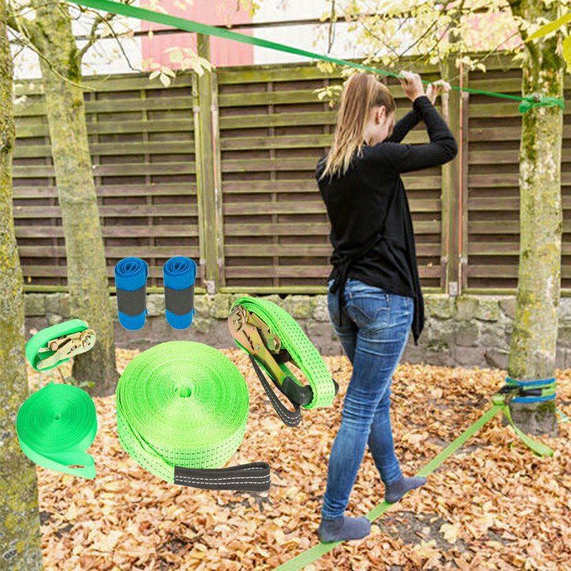 Slackline sada - včetně ochrany stromu. Slackline je moderní trendový sport, který uspokojí rodinku prahnoucí po odpolední zábavě, i odvážného dobrodruha, který potřebuje rozproudit adrenalin. Tento sport trénuje tělesné napětí a rovnováhu. Ono se to totiž nezdá, ale takové balancování na pružném popruhu není vůbec jednoduché. Je potřeba zapojit každý sval v těle, a přitom můžete stát jen pár centimetrů nad zemí. Začátečníci si mohou instalovat vodicí lano, kterého se mohou držet při prvních krůčcích. Napínací račny slouží k nastavení napětí popruhu. Slackline lze s minimální námahou instalovat mezi dva stromy na dvoře nebo v parku. Plstěné proužky jsou určeny k ochraně stromů. Tato venkovní hračka je opravdovým nezbytností pro zahradu. Hlavní vlastnosti: procvičuje rovnováhu a posílit koordinaciplstěné proužky slouží jako ochrana stromůnapínací račny k nastavení napětí