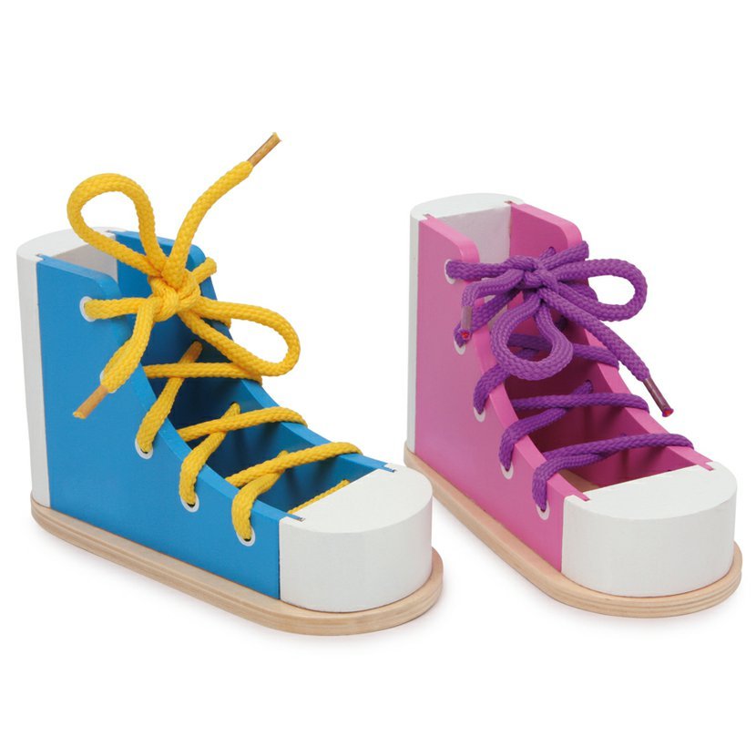 Mají Vaše děti problém se samostatným zavazováním bot? Výborná pomůcka pro nácvik šněrování tkaniček. Dvě barevné botky procvičí děti v manuální zručnosti a trpělivosti.