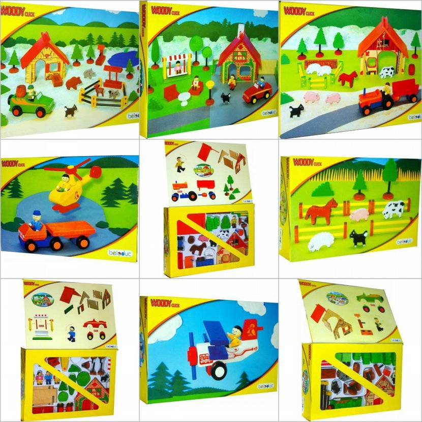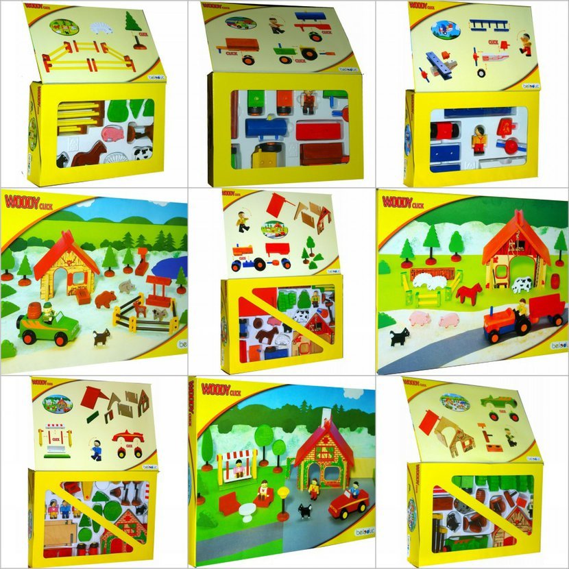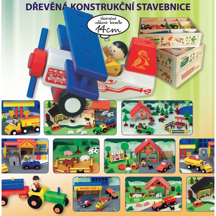 - Celý soubor 11 stavebnic je uložený ve 3 dřevěných boxech.