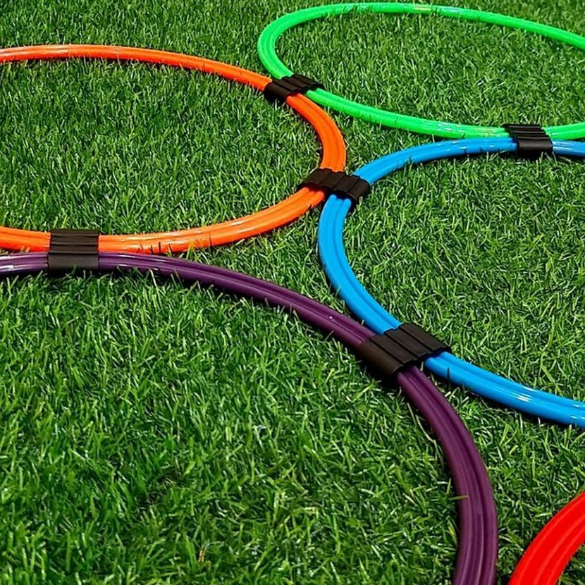 Plastová otočná spojka k pevnému spojení dvou plochých kruhů pro vytvoření překážkové dráhy. Pro položení na trávník, podlahu apod.