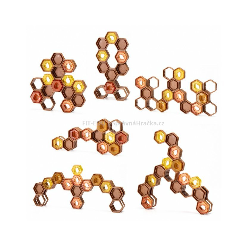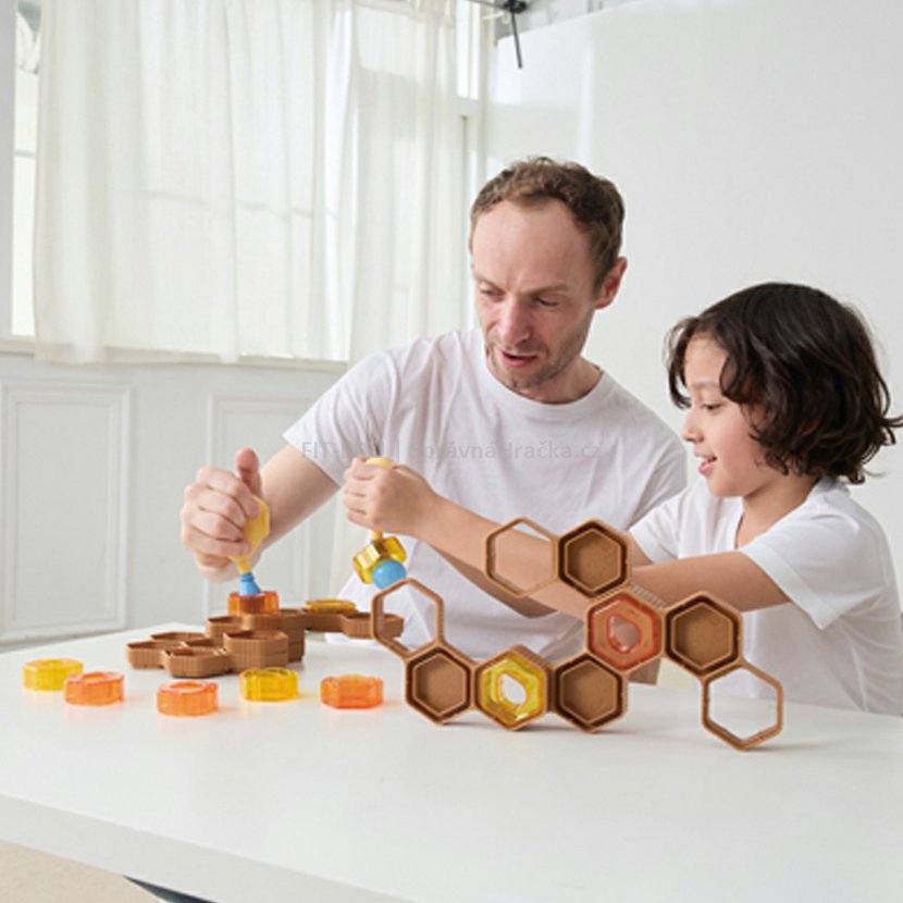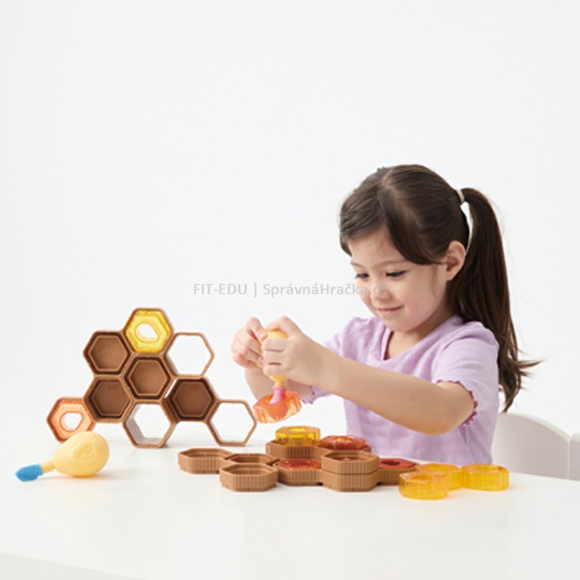 Tato didaktická hra je zaměřená na rozvoj jemné motoriky, síly úchopu a koordinace oko-ruka. Úkolem dětí je pomocí speciální „mačkací včelky“ zatlačit průhledné medové bloky do rámu – včelí plástve a to tak, aby při postavení včelích plástů nevypadly ven.