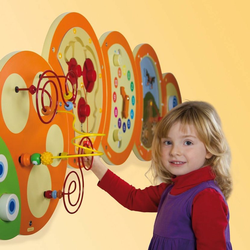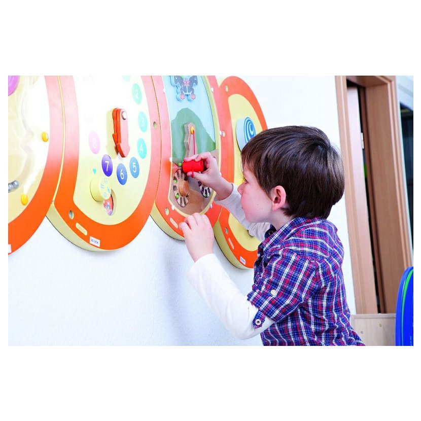 Nástěnný prvek má krásný, moderní design a nabízí sofistikovanou zábavu s velkým učebním potenciálem. Děti prozkoumávají zrakem i hmatem.Výchovně-vzdělávací cíl: rozvoj jemné motoriky, koordinace…