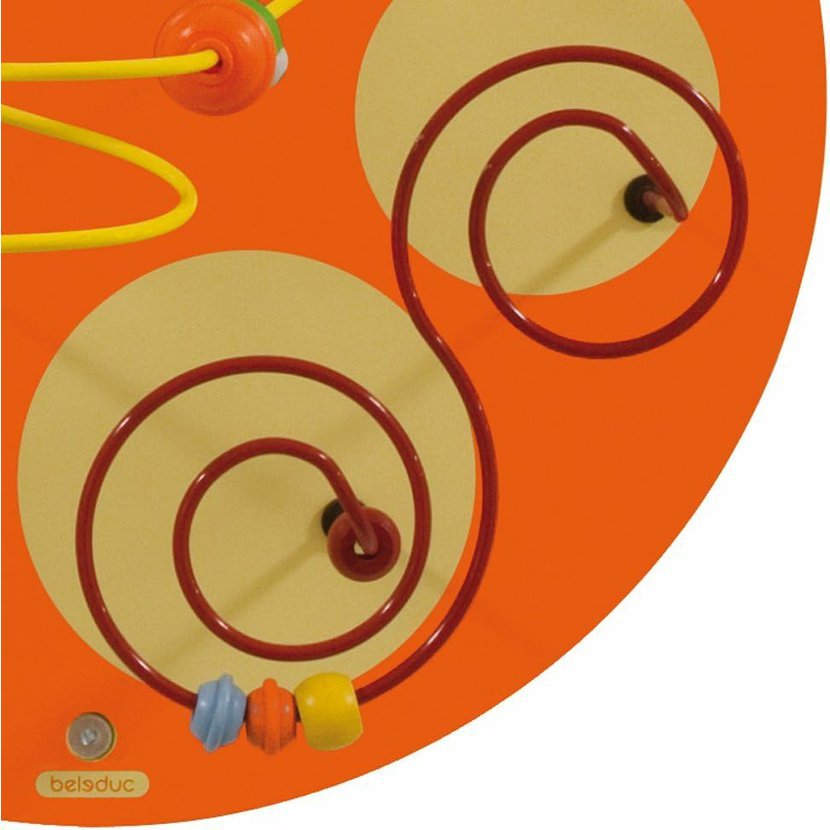 Různorodé součástky se posunují po spirálách. Slouží k rozvoji vizuomotorické koordinace ruka-oko a jemných motorických schopností.
