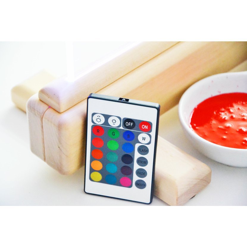 V podstavci z masivního lakovaného dřeva je zabudované LED osvětlení, které rozzáří hotové malířské dílo kromě bílého světla ještě dalšími 15 barvami. Změnu barev lze nastavit dle 4 stupňů.