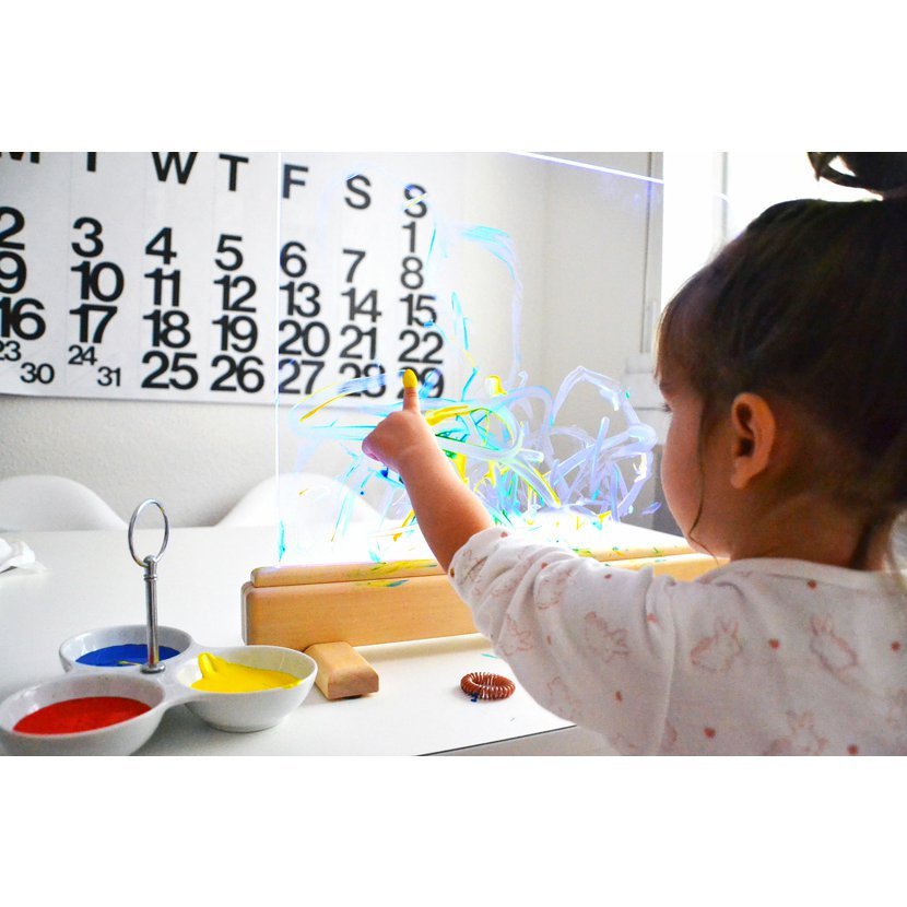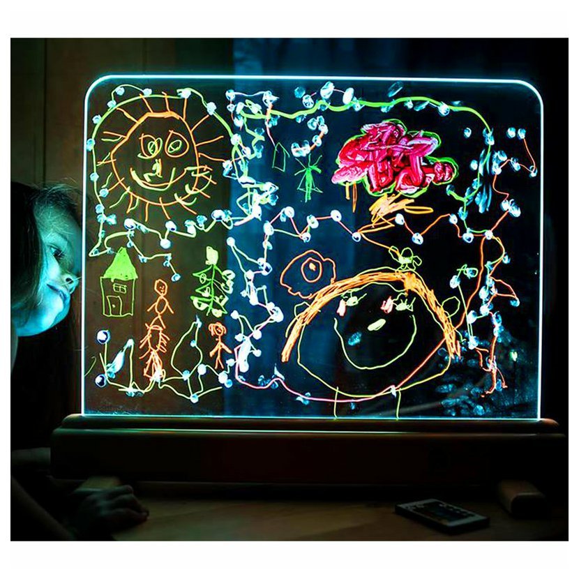 Kvalitní světelná tabule ze speciálního skla je úžasné médium k malování prstovými barvami, kvaš a akvarelovými barvami a speciálními fixami, svítícími ve tmě.
