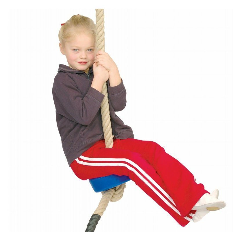 Otevírání v prostředku je vhodné pro všechna normovaná školní lana: jednoduše protáhnout konec lana otvorem dolů, skrz žlutou kapsu a protáhnout skrz vzniklou lanovou smyčku. Houpačková sedačka je hotová! Smyčka se sama utáhne a zůstane během používání zajištěná díky zátěži při sezení nebo stání na SwingTopu. I přesto je pak velmi snadné, pokud už ho nechcete používat, vše opět sundat.