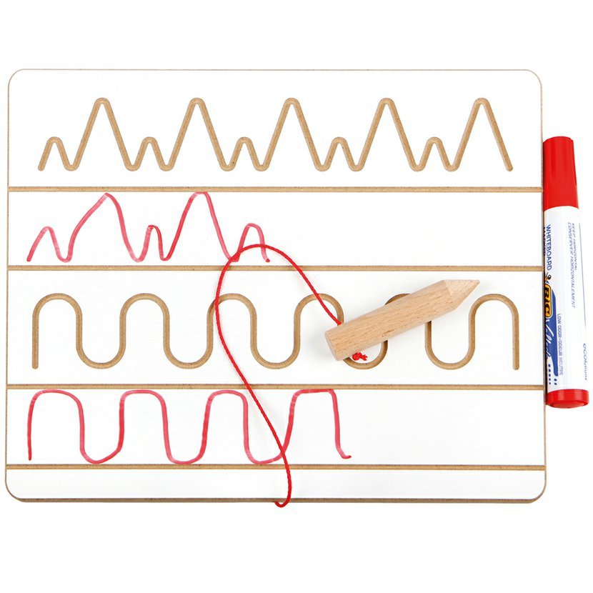 Kopírováním vyznačené linky pomocí tužky procvičuje dítě koordinaci oko-ruka, koncentraci a jemnou motoriku ruky. Je ideální k procvičování psaní u předškolních dětí.