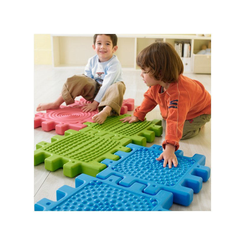 obsah: 6 desek o rozměru 40 x 40 x 5cm s různými povrchovými texturami (2 x tečky, 2 x mřížka, 2 x koncentrické kruhy),